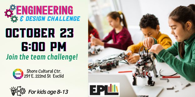 Calling all future engineers! Are you 8-13 years old? Do you like challenges? Come to Euclid Public Library’s engineering and design challenge on October 23 at 6:00 pm at the Shore Cultural Centre, 291 East 222 Street in Euclid, Ohio. You’ll test your skills by working in teams to design something cool.